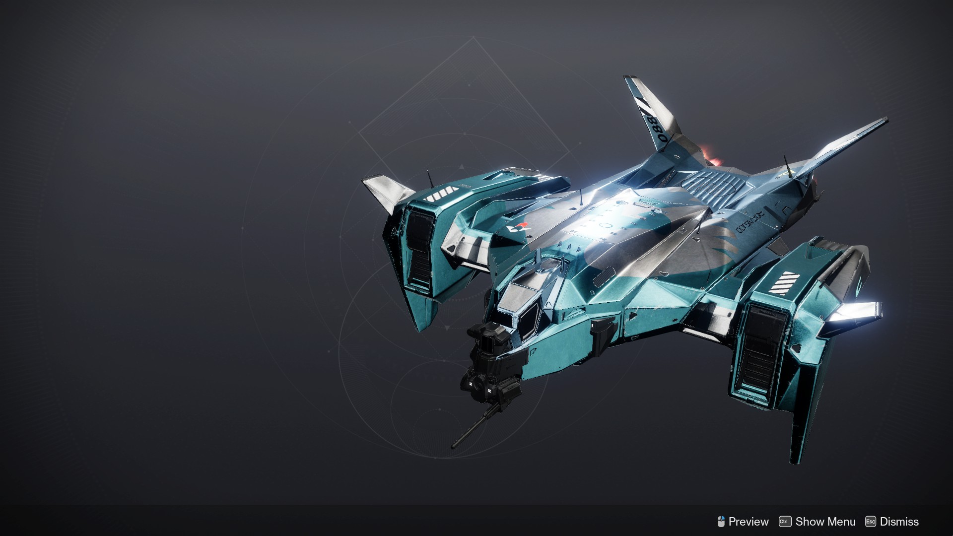 This image is a screenshot of a vehicle from the Destiny series of first-person shooter video games developed by Bungie Studios and published by Bungie or Activision. It falls under the screenshot category for a copyrighted computer game or video game, and the copyright for it is most likely held by the company that developed the game. It is believed that the use of a limited number of web-resolution screenshots: