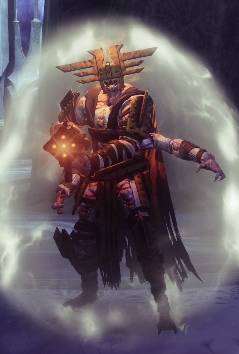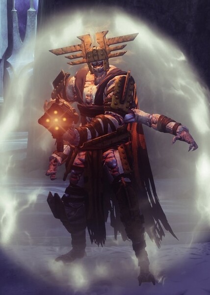 This image is a screenshot of a character or AI unit from the Destiny series of first-person shooter video games developed by Bungie Studios and published by Bungie or Activision. It falls under the screenshot category for a copyrighted computer game or video game, and the copyright for it is most likely held by the company that developed the game. It is believed that the use of a limited number of web-resolution screenshots: