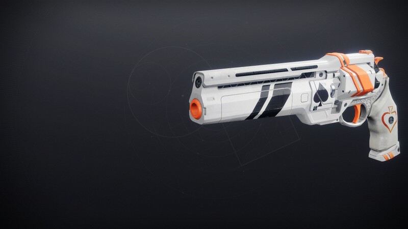 This image is a screenshot of a weapon from the Destiny series of first-person shooter video games developed by Bungie Studios and published by Bungie or Activision. It falls under the screenshot category for a copyrighted computer game or video game, and the copyright for it is most likely held by the company that developed the game. It is believed that the use of a limited number of web-resolution screenshots: