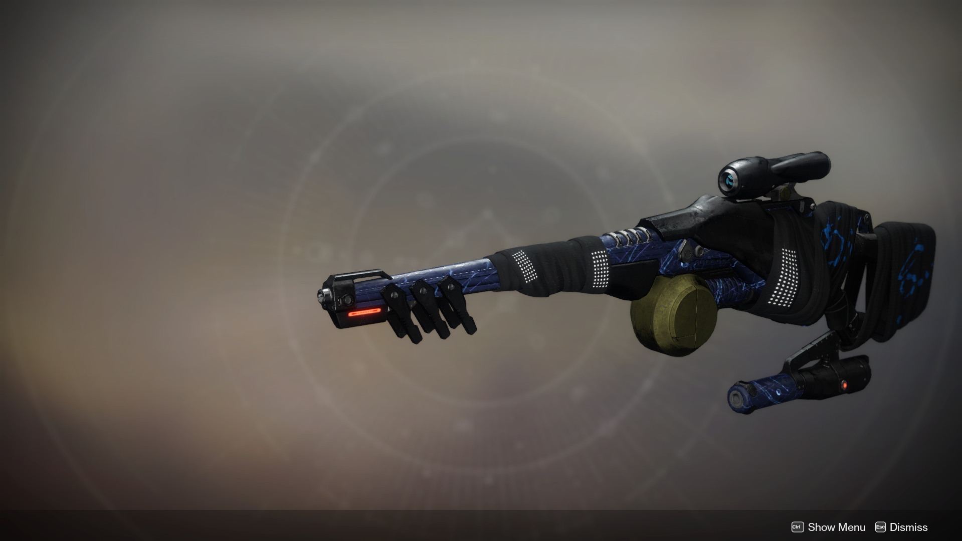This image is a screenshot of a weapon from the Destiny series of first-person shooter video games developed by Bungie Studios and published by Bungie or Activision. It falls under the screenshot category for a copyrighted computer game or video game, and the copyright for it is most likely held by the company that developed the game. It is believed that the use of a limited number of web-resolution screenshots: