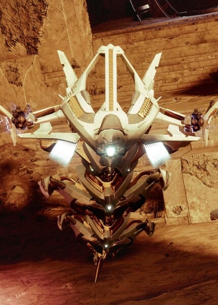 This image is a screenshot of a character or AI unit from the Destiny series of first-person shooter video games developed by Bungie Studios and published by Bungie or Activision. It falls under the screenshot category for a copyrighted computer game or video game, and the copyright for it is most likely held by the company that developed the game. It is believed that the use of a limited number of web-resolution screenshots: