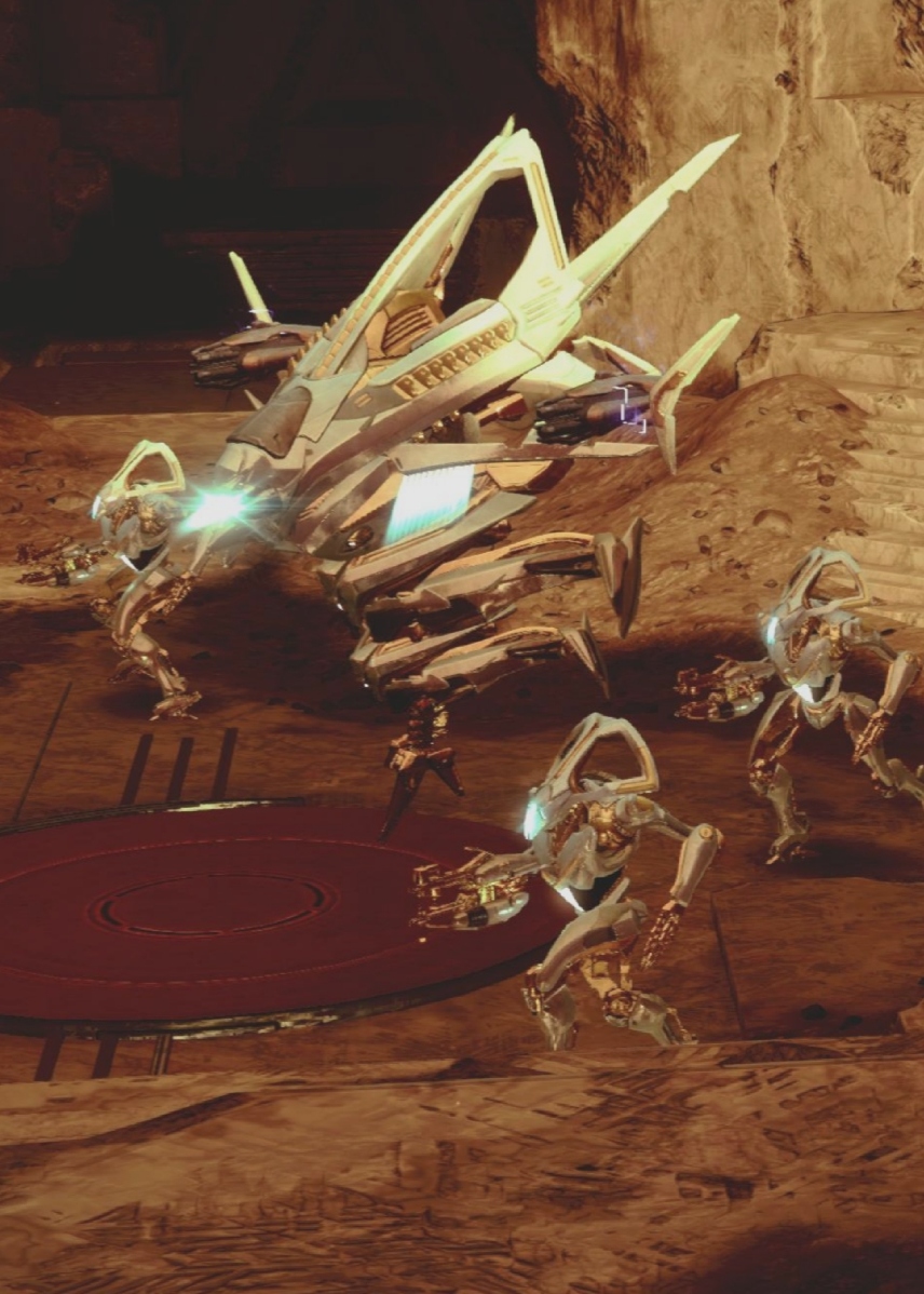 This image is a screenshot of a character or AI unit from the Destiny series of first-person shooter video games developed by Bungie Studios and published by Bungie or Activision. It falls under the screenshot category for a copyrighted computer game or video game, and the copyright for it is most likely held by the company that developed the game. It is believed that the use of a limited number of web-resolution screenshots:
