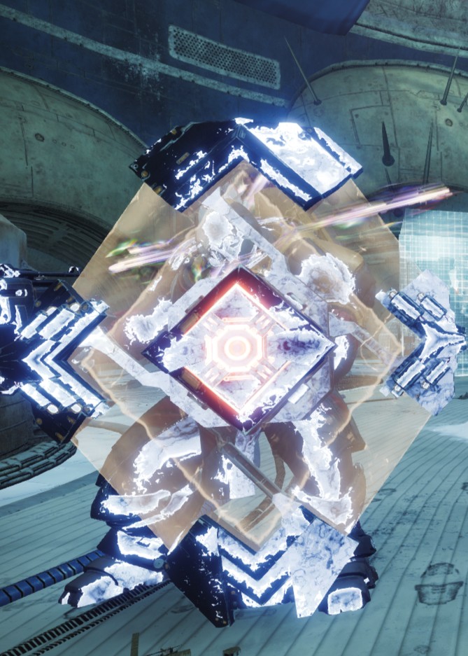 This image is a screenshot of a character or AI unit from the Destiny series of first-person shooter video games developed by Bungie Studios and published by Bungie or Activision. It falls under the screenshot category for a copyrighted computer game or video game, and the copyright for it is most likely held by the company that developed the game. It is believed that the use of a limited number of web-resolution screenshots: