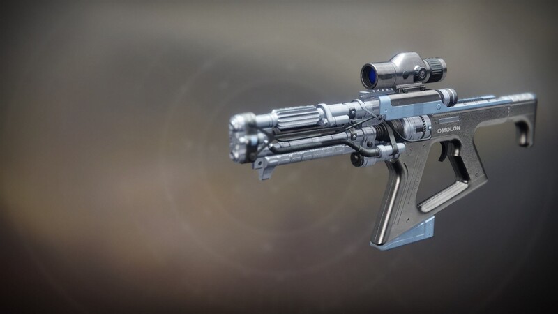 This image is a screenshot of a weapon from the Destiny series of first-person shooter video games developed by Bungie Studios and published by Bungie or Activision. It falls under the screenshot category for a copyrighted computer game or video game, and the copyright for it is most likely held by the company that developed the game. It is believed that the use of a limited number of web-resolution screenshots: