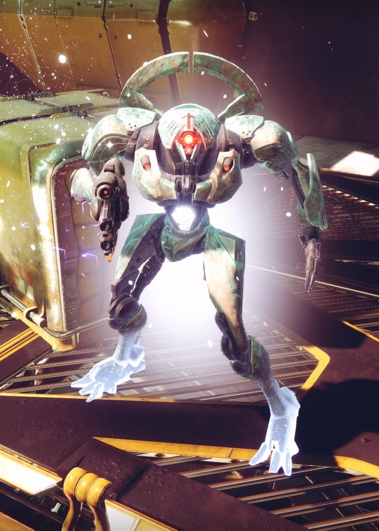 This image is a screenshot of a character or AI unit from the Destiny series of first-person shooter video games developed by Bungie Studios and published by Bungie or Activision. It falls under the screenshot category for a copyrighted computer game or video game, and the copyright for it is most likely held by the company that developed the game. It is believed that the use of a limited number of web-resolution screenshots: