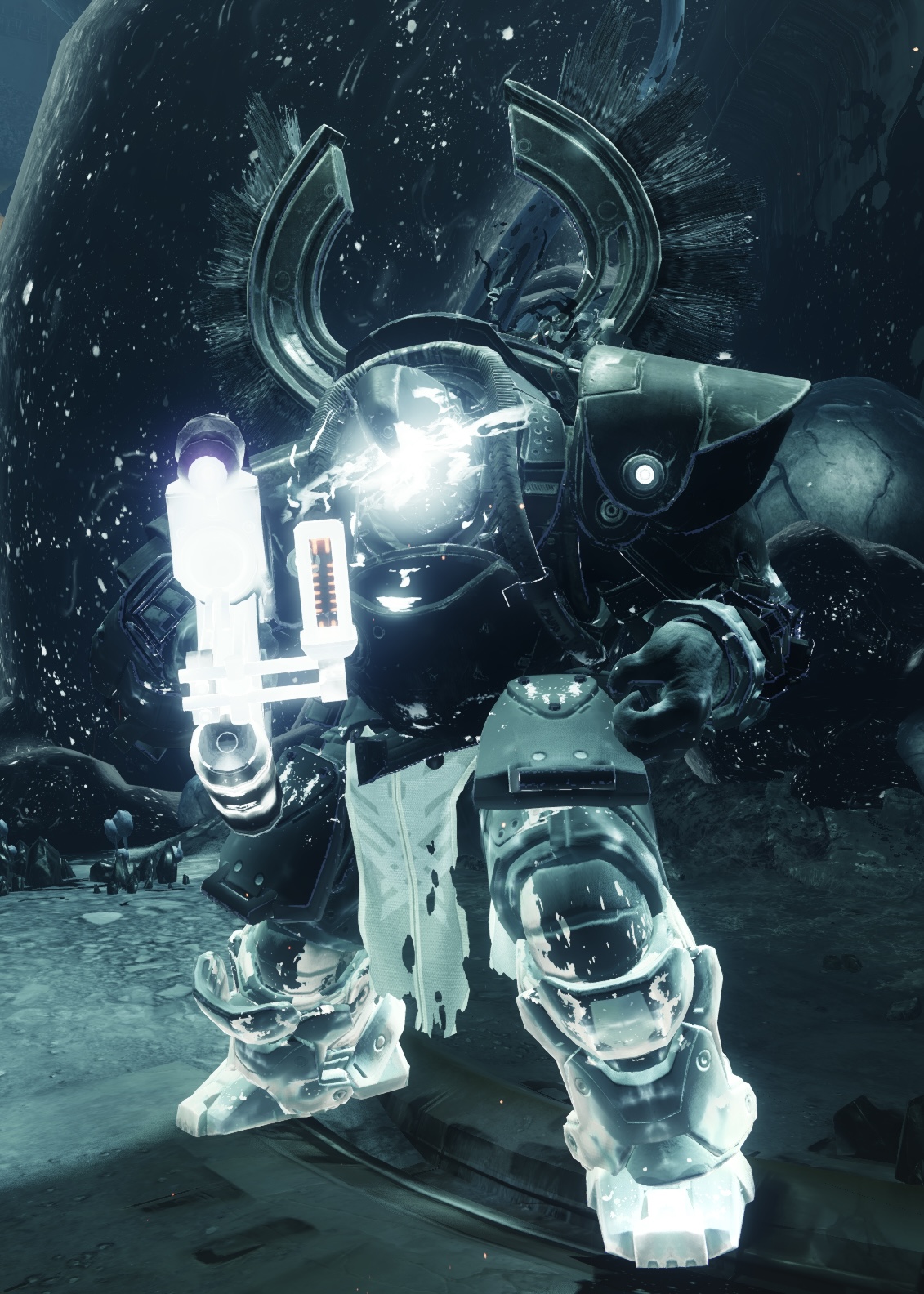 This image is a screenshot of a character or AI unit from the Destiny series of first-person shooter video games developed by Bungie Studios and published by Bungie or Activision. It falls under the screenshot category for a copyrighted computer game or video game, and the copyright for it is most likely held by the company that developed the game. It is believed that the use of a limited number of web-resolution screenshots: