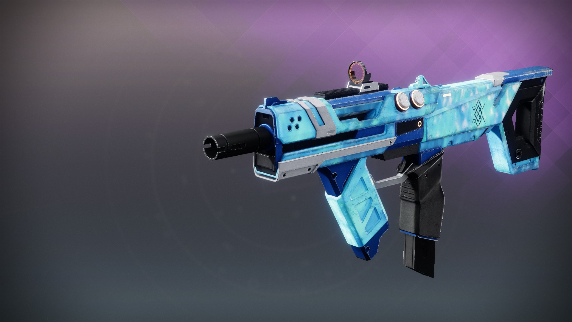 This image is a screenshot of a weapon from the Destiny series of first-person shooter video games developed by Bungie Studios and published by Bungie or Activision. It falls under the screenshot category for a copyrighted computer game or video game, and the copyright for it is most likely held by the company that developed the game. It is believed that the use of a limited number of web-resolution screenshots: