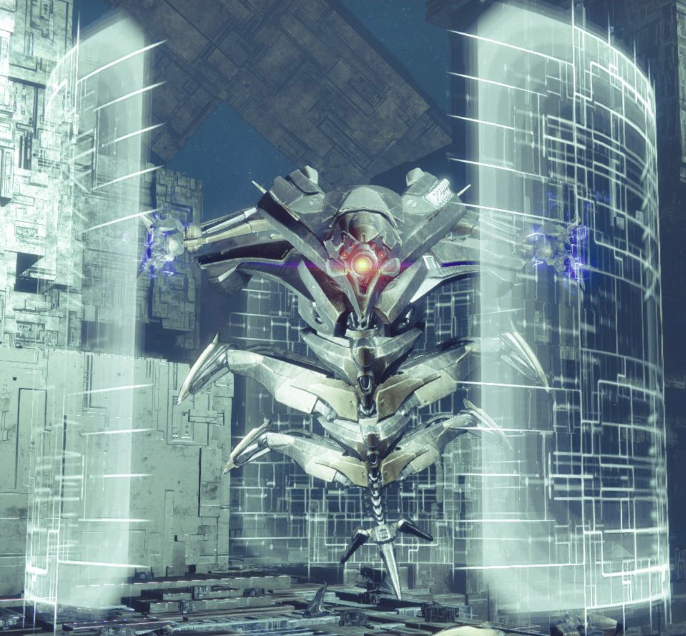 This image is a screenshot of a character or AI unit from the Destiny series of first-person shooter video games developed by Bungie Studios and published by Bungie or Activision. It falls under the screenshot category for a copyrighted computer game or video game, and the copyright for it is most likely held by the company that developed the game. It is believed that the use of a limited number of web-resolution screenshots: