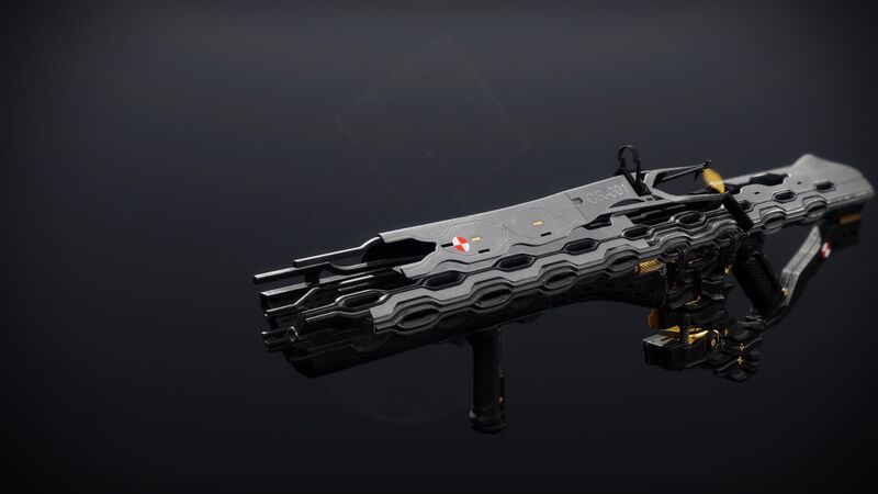 This image is a screenshot of a weapon from the Destiny series of first-person shooter video games developed by Bungie Studios and published by Bungie or Activision. It falls under the screenshot category for a copyrighted computer game or video game, and the copyright for it is most likely held by the company that developed the game. It is believed that the use of a limited number of web-resolution screenshots: