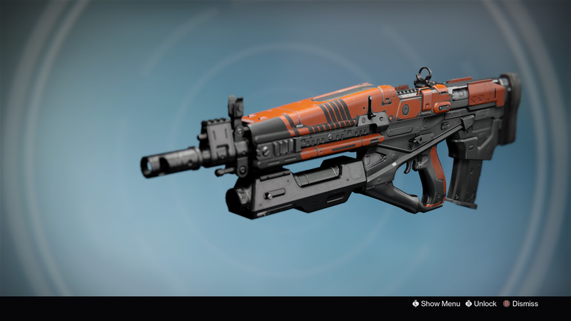 This image is a screenshot of a weapon from the Destiny series of first-person shooter video games developed by Bungie Studios and published by Bungie or Activision. It falls under the screenshot category for a copyrighted computer game or video game, and the copyright for it is most likely held by the company that developed the game. It is believed that the use of a limited number of web-resolution screenshots: