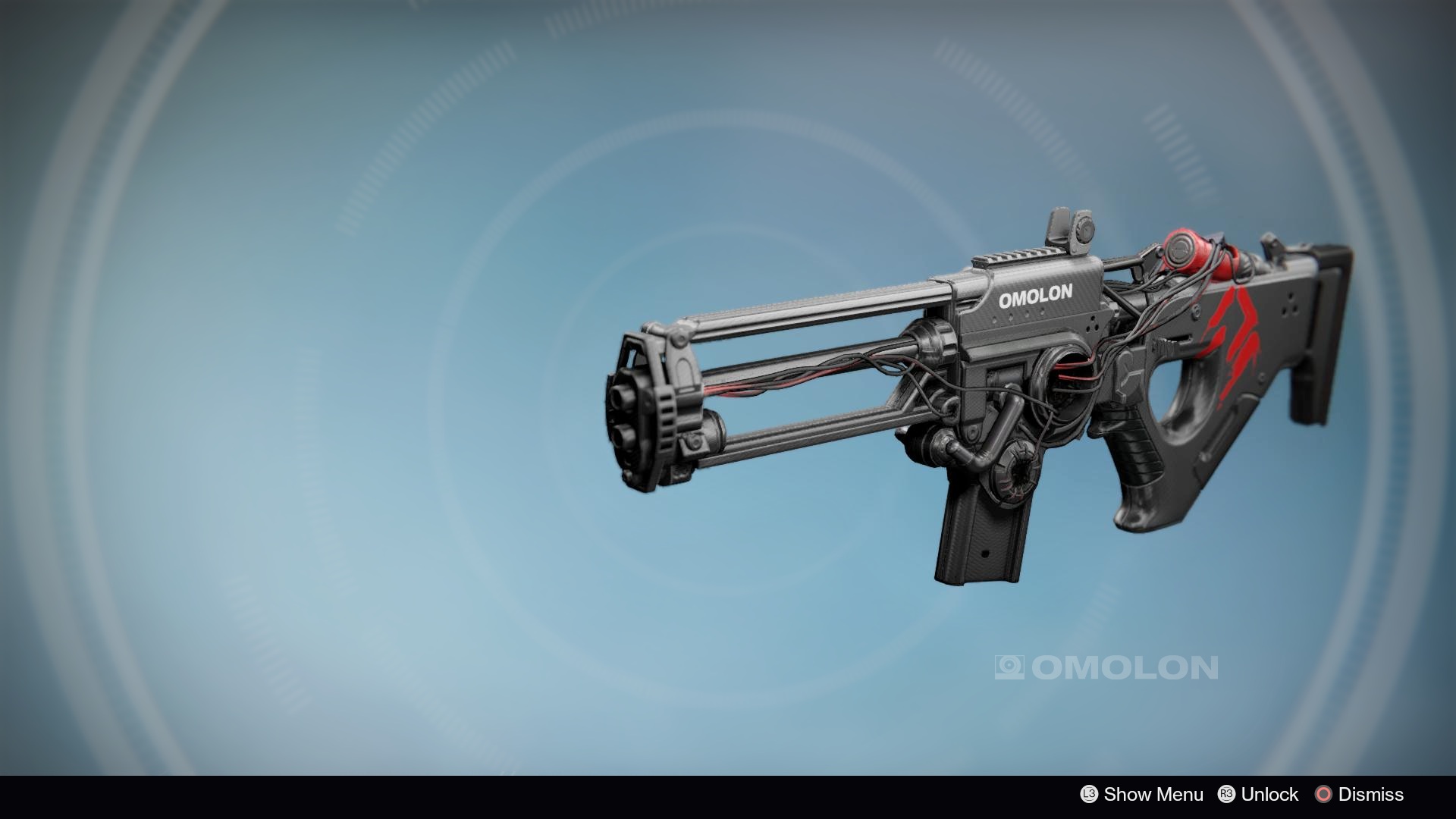 This image is a screenshot of a weapon from the Destiny series of first-person shooter video games developed by Bungie Studios and published by Bungie or Activision. It falls under the screenshot category for a copyrighted computer game or video game, and the copyright for it is most likely held by the company that developed the game. It is believed that the use of a limited number of web-resolution screenshots: