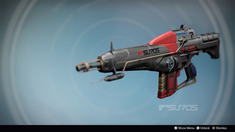 This image is a screenshot of a weapon from the Destiny series of first-person shooter video games developed by Bungie Studios and published by Bungie or Activision. It falls under the screenshot category for a copyrighted computer game or video game, and the copyright for it is most likely held by the company that developed the game. It is believed that the use of a limited number of web-resolution screenshots: