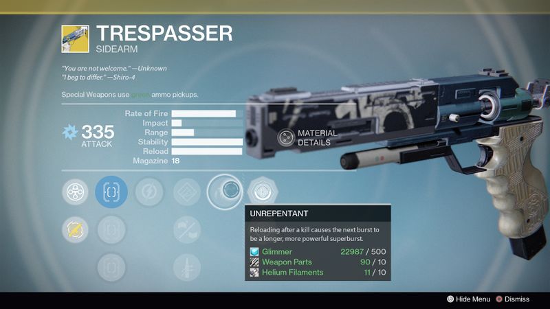 | current | 10:30, September 16, 2016 | 1,920 × 1,080 (597 KB) | Shazamikaze (talk | contribs) | ==Licensing== {{Weapon-screen}} Category:Images of Sidearms Category:Images of Trespasser |