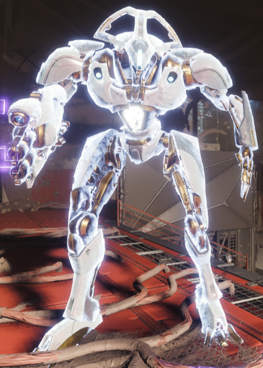 This image is a screenshot of a character or AI unit from the Destiny series of first-person shooter video games developed by Bungie Studios and published by Bungie or Activision. It falls under the screenshot category for a copyrighted computer game or video game, and the copyright for it is most likely held by the company that developed the game. It is believed that the use of a limited number of web-resolution screenshots: