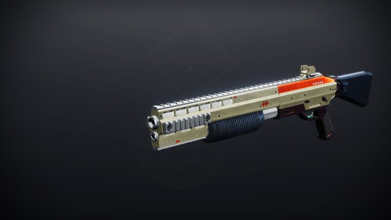 This image is a screenshot of a weapon from the Destiny series of first-person shooter video games developed by Bungie Studios and published by Bungie or Activision. It falls under the screenshot category for a copyrighted computer game or video game, and the copyright for it is most likely held by the company that developed the game. It is believed that the use of a limited number of web-resolution screenshots: