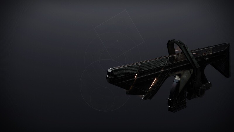This image is a screenshot of a weapon from the Destiny series of first-person shooter video games developed by Bungie Studios and published by Bungie or Activision. It falls under the screenshot category for a copyrighted computer game or video game, and the copyright for it is most likely held by the company that developed the game. It is believed that the use of a limited number of web-resolution screenshots: