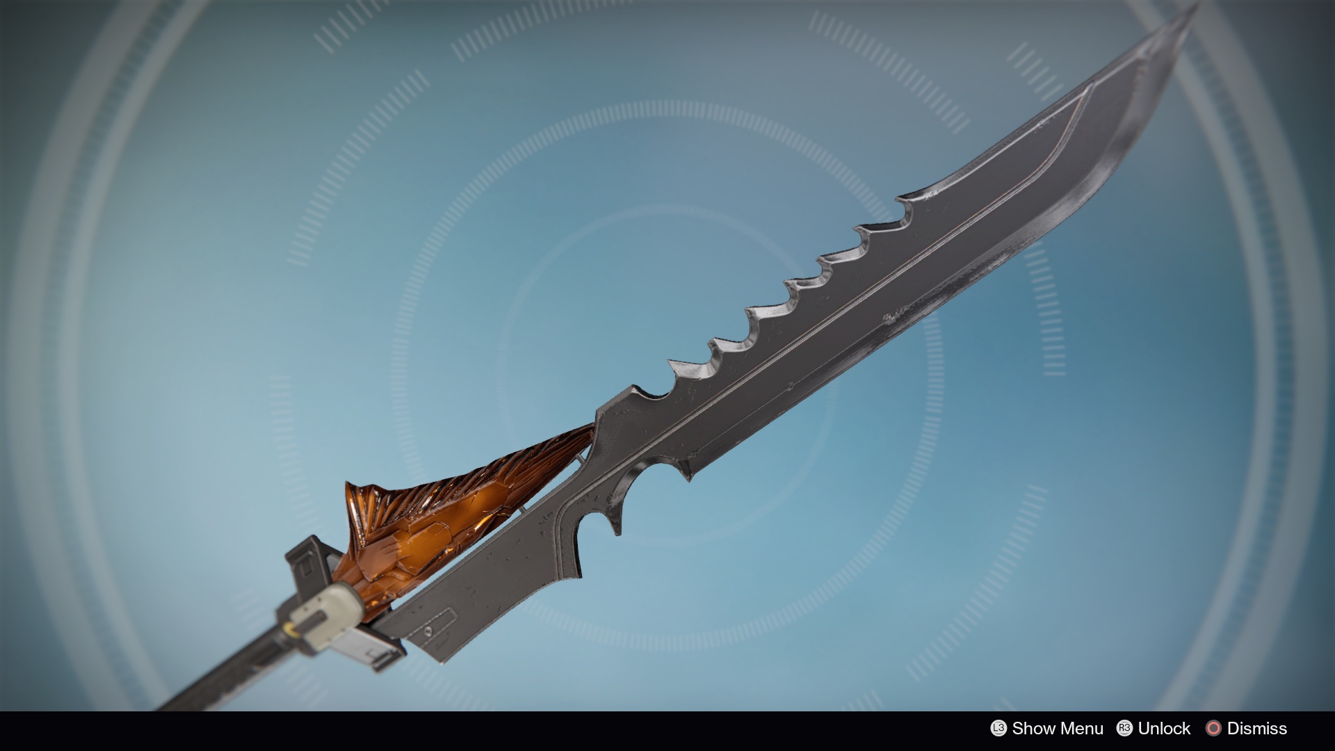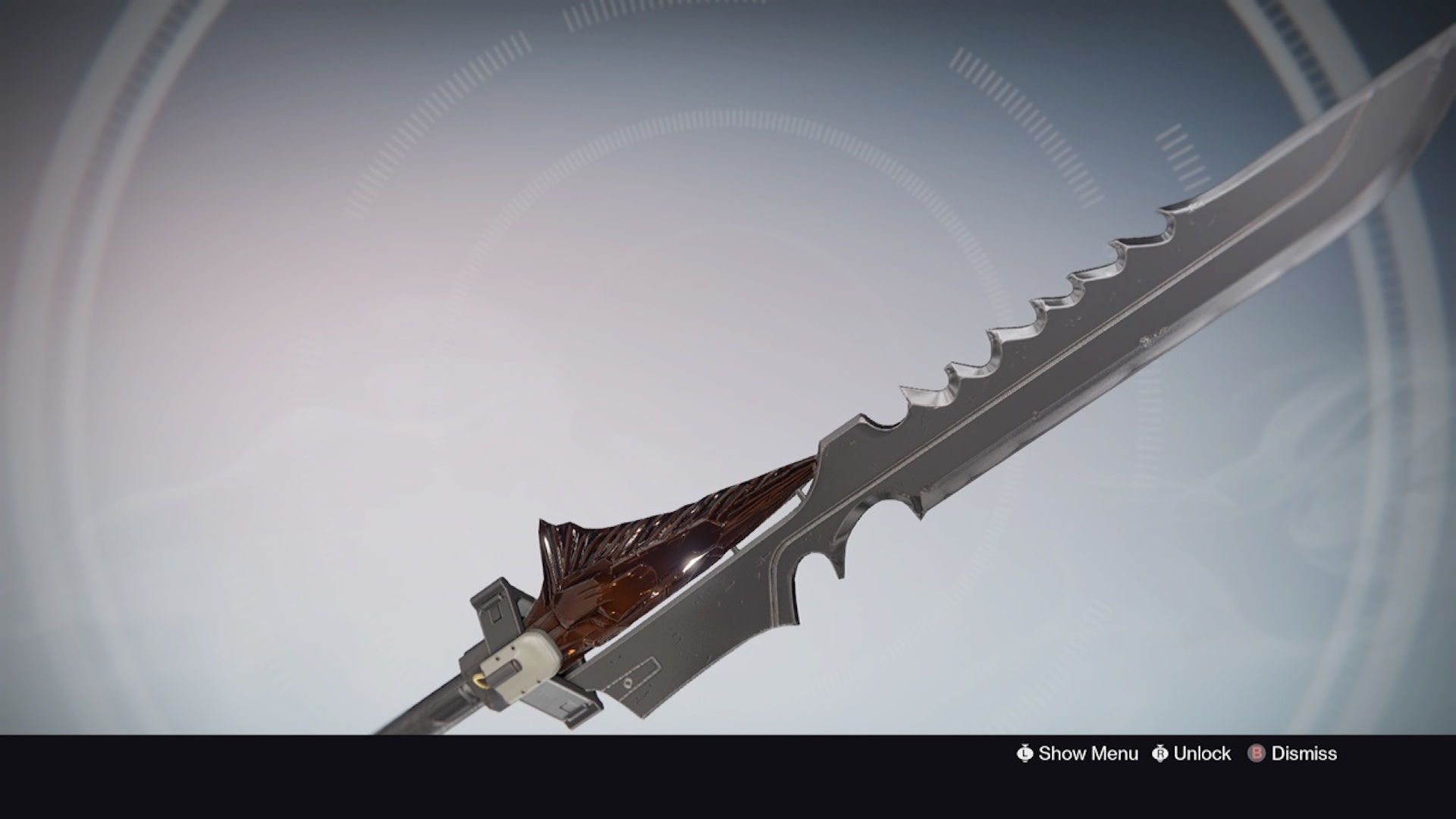 This image is a screenshot of a weapon from the Destiny series of first-person shooter video games developed by Bungie Studios and published by Bungie or Activision. It falls under the screenshot category for a copyrighted computer game or video game, and the copyright for it is most likely held by the company that developed the game. It is believed that the use of a limited number of web-resolution screenshots: