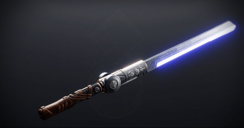 This image is a screenshot of a weapon from the Destiny series of first-person shooter video games developed by Bungie Studios and published by Bungie or Activision. It falls under the screenshot category for a copyrighted computer game or video game, and the copyright for it is most likely held by the company that developed the game. It is believed that the use of a limited number of web-resolution screenshots: