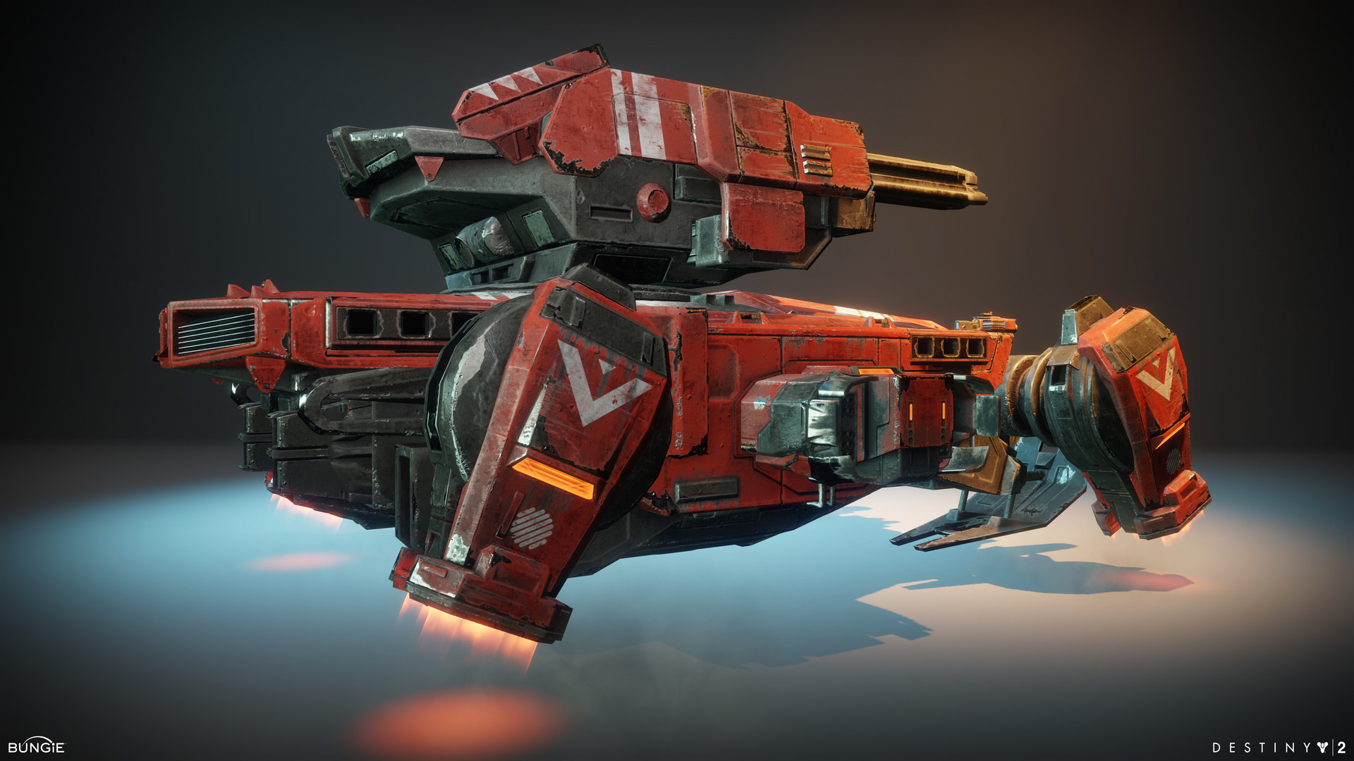 This image is a screenshot of a vehicle from the Destiny series of first-person shooter video games developed by Bungie Studios and published by Bungie or Activision. It falls under the screenshot category for a copyrighted computer game or video game, and the copyright for it is most likely held by the company that developed the game. It is believed that the use of a limited number of web-resolution screenshots: