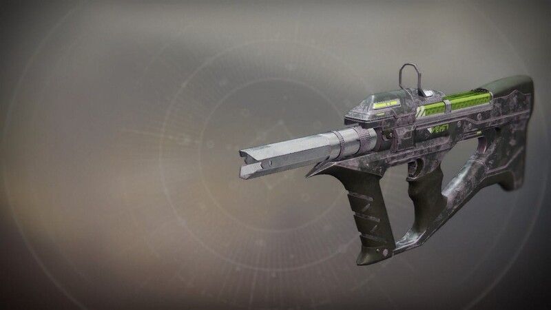 This image is a screenshot of a weapon from the Destiny series of first-person shooter video games developed by Bungie Studios and published by Bungie or Activision. It falls under the screenshot category for a copyrighted computer game or video game, and the copyright for it is most likely held by the company that developed the game. It is believed that the use of a limited number of web-resolution screenshots: