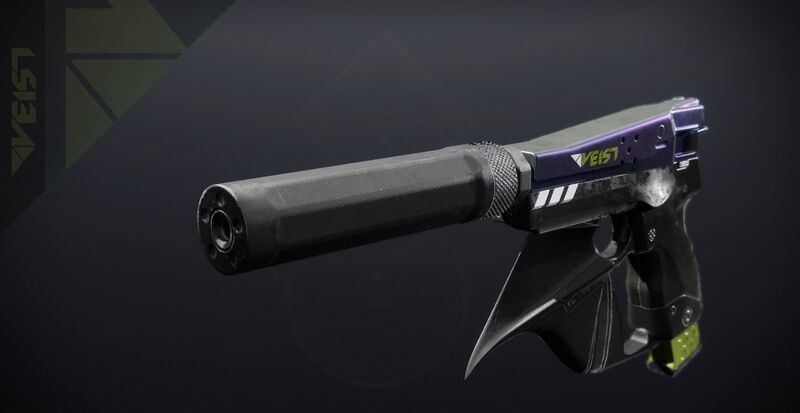 This image is a screenshot of a weapon from the Destiny series of first-person shooter video games developed by Bungie Studios and published by Bungie or Activision. It falls under the screenshot category for a copyrighted computer game or video game, and the copyright for it is most likely held by the company that developed the game. It is believed that the use of a limited number of web-resolution screenshots: