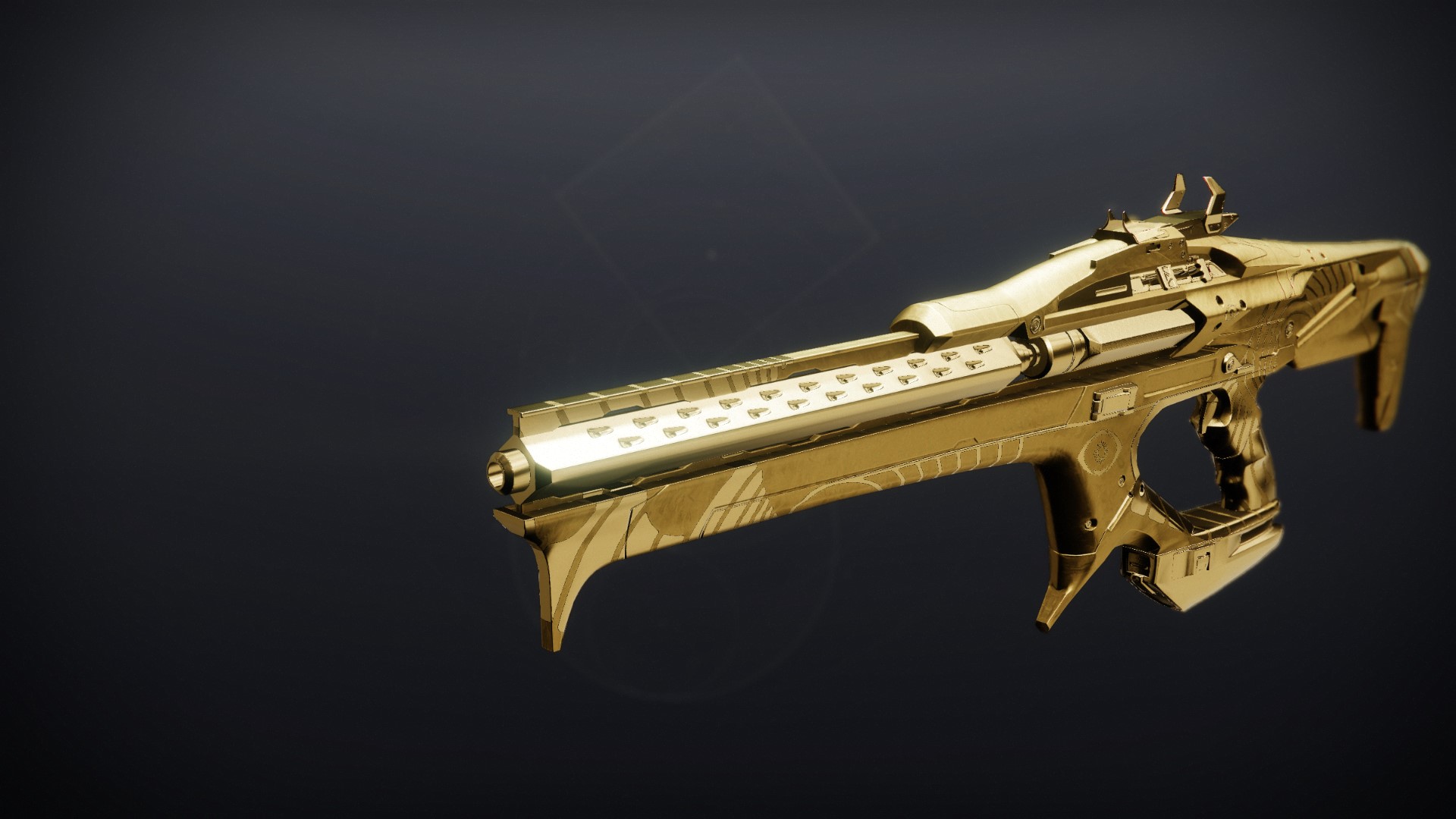 This image is a screenshot of a weapon from the Destiny series of first-person shooter video games developed by Bungie Studios and published by Bungie or Activision. It falls under the screenshot category for a copyrighted computer game or video game, and the copyright for it is most likely held by the company that developed the game. It is believed that the use of a limited number of web-resolution screenshots: