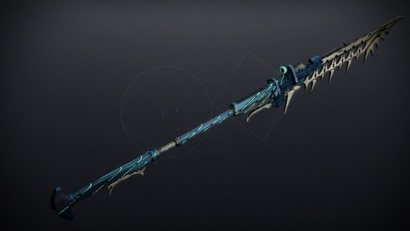 This image is a screenshot of a weapon from the Destiny series of first-person shooter video games developed by Bungie Studios and published by Bungie or Activision. It falls under the screenshot category for a copyrighted computer game or video game, and the copyright for it is most likely held by the company that developed the game. It is believed that the use of a limited number of web-resolution screenshots: