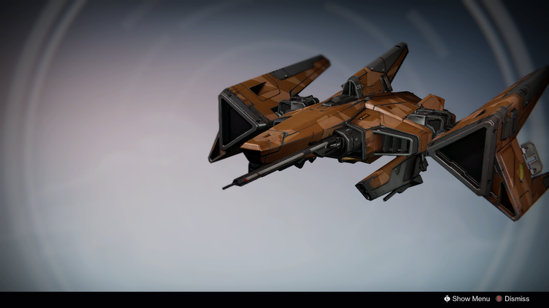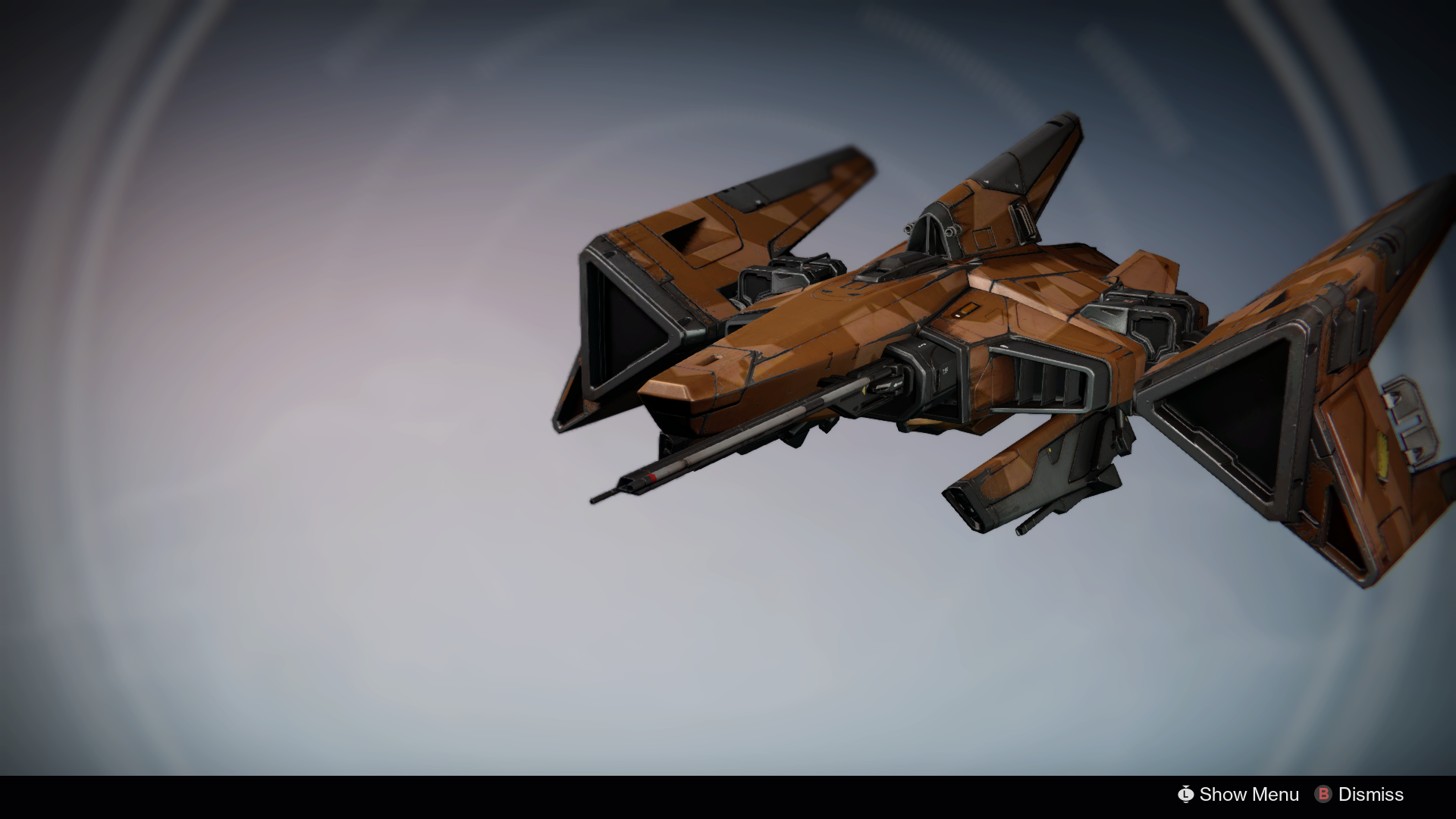This image is a screenshot of a vehicle from the Destiny series of first-person shooter video games developed by Bungie Studios and published by Bungie or Activision. It falls under the screenshot category for a copyrighted computer game or video game, and the copyright for it is most likely held by the company that developed the game. It is believed that the use of a limited number of web-resolution screenshots: