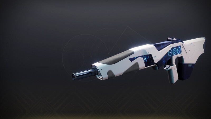 This image is a screenshot of a weapon from the Destiny series of first-person shooter video games developed by Bungie Studios and published by Bungie or Activision. It falls under the screenshot category for a copyrighted computer game or video game, and the copyright for it is most likely held by the company that developed the game. It is believed that the use of a limited number of web-resolution screenshots: