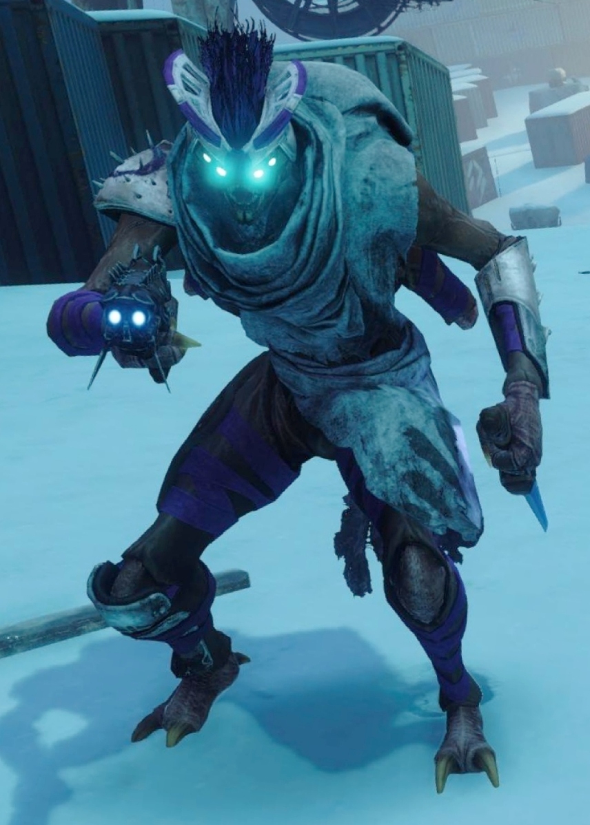 This image is a screenshot of a character or AI unit from the Destiny series of first-person shooter video games developed by Bungie Studios and published by Bungie or Activision. It falls under the screenshot category for a copyrighted computer game or video game, and the copyright for it is most likely held by the company that developed the game. It is believed that the use of a limited number of web-resolution screenshots: