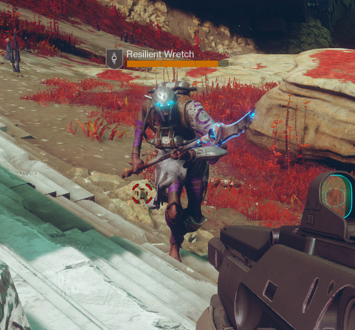 This image is a screenshot of a character or AI unit from the Destiny series of first-person shooter video games developed by Bungie Studios and published by Bungie or Activision. It falls under the screenshot category for a copyrighted computer game or video game, and the copyright for it is most likely held by the company that developed the game. It is believed that the use of a limited number of web-resolution screenshots: