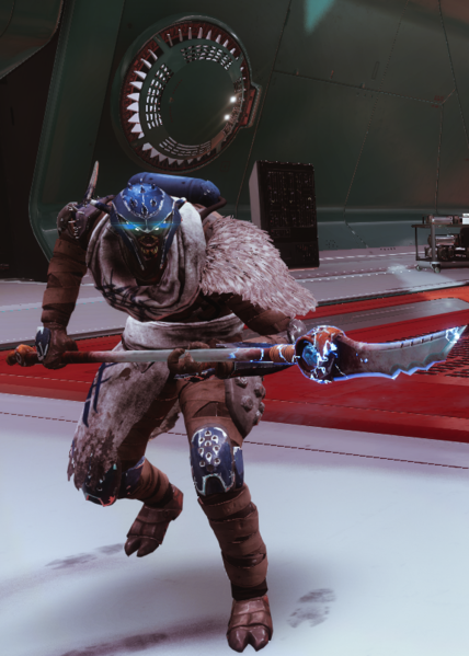 This image is a screenshot of a character or AI unit from the Destiny series of first-person shooter video games developed by Bungie Studios and published by Bungie or Activision. It falls under the screenshot category for a copyrighted computer game or video game, and the copyright for it is most likely held by the company that developed the game. It is believed that the use of a limited number of web-resolution screenshots: