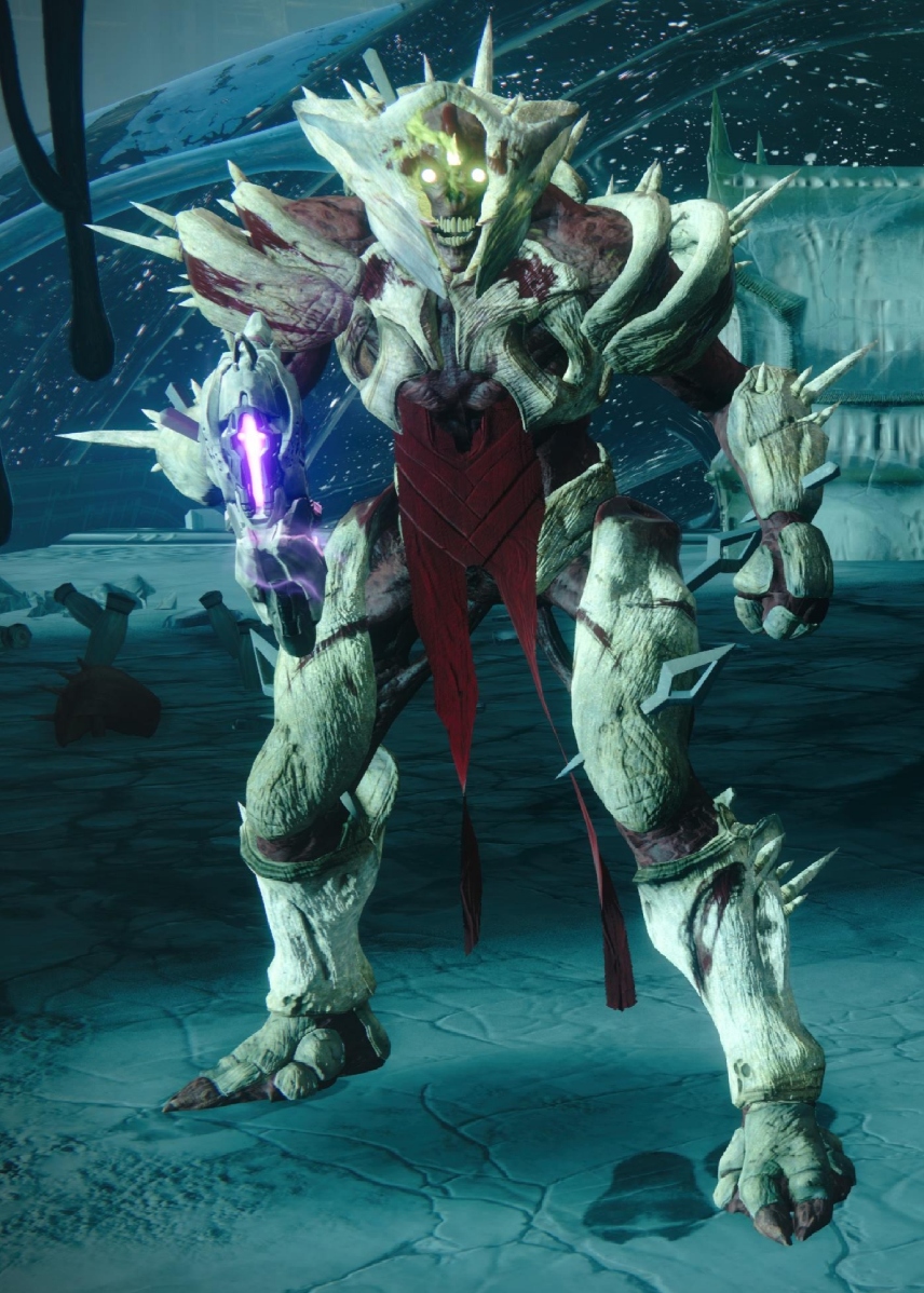This image is a screenshot of a character or AI unit from the Destiny series of first-person shooter video games developed by Bungie Studios and published by Bungie or Activision. It falls under the screenshot category for a copyrighted computer game or video game, and the copyright for it is most likely held by the company that developed the game. It is believed that the use of a limited number of web-resolution screenshots: