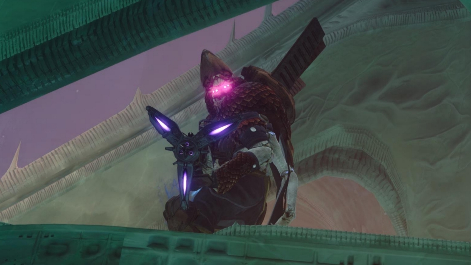 This image is a screenshot of a character or AI unit from the Destiny series of first-person shooter video games developed by Bungie Studios and published by Bungie or Activision. It falls under the screenshot category for a copyrighted computer game or video game, and the copyright for it is most likely held by the company that developed the game. It is believed that the use of a limited number of web-resolution screenshots: