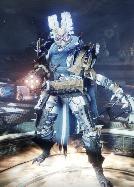 This image is a screenshot of a character or AI unit from the Destiny series of first-person shooter video games developed by Bungie Studios and published by Bungie or Activision. It falls under the screenshot category for a copyrighted computer game or video game, and the copyright for it is most likely held by the company that developed the game. It is believed that the use of a limited number of web-resolution screenshots: