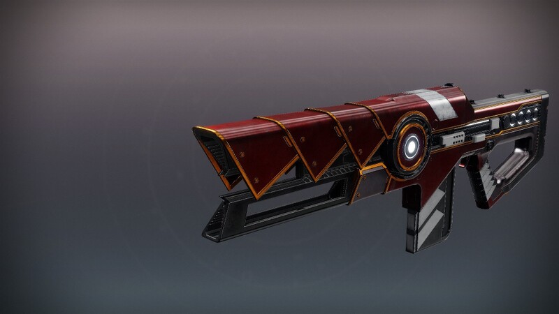 This image is a screenshot of a weapon from the Destiny series of first-person shooter video games developed by Bungie Studios and published by Bungie or Activision. It falls under the screenshot category for a copyrighted computer game or video game, and the copyright for it is most likely held by the company that developed the game. It is believed that the use of a limited number of web-resolution screenshots: