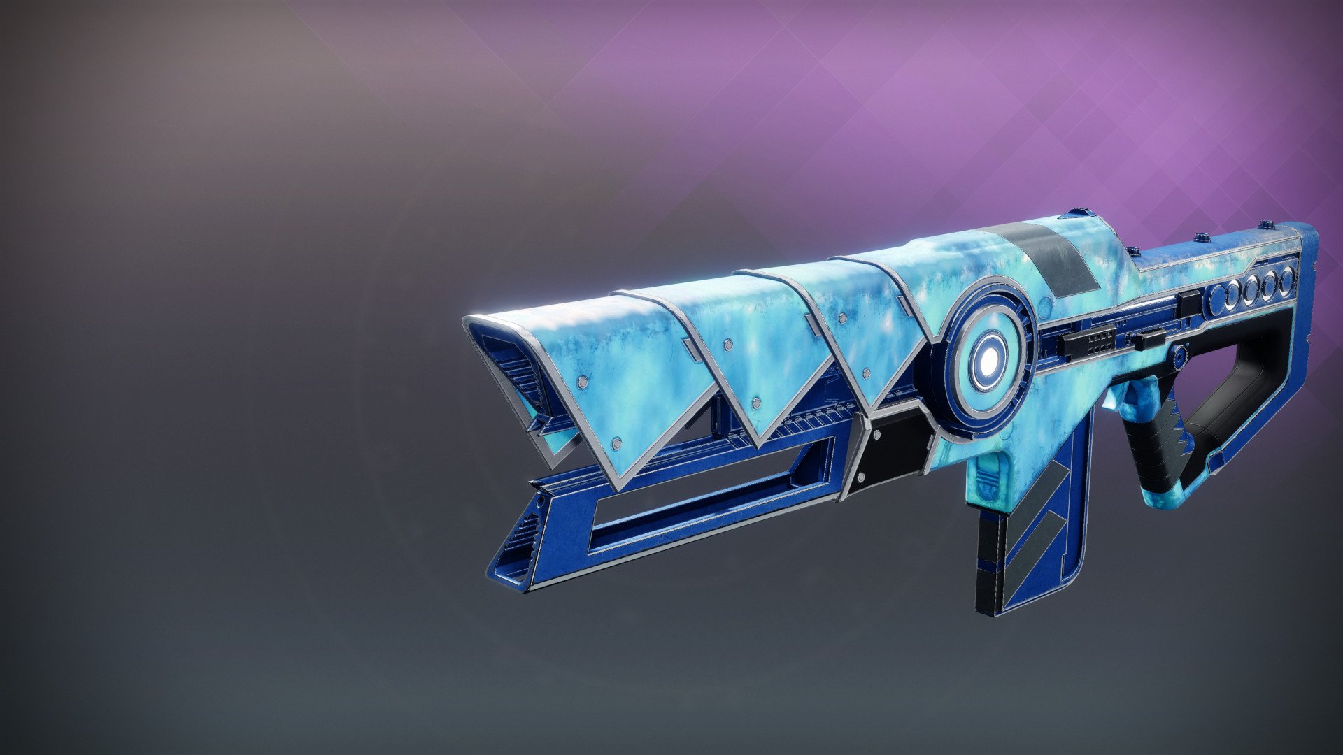 This image is a screenshot of a weapon from the Destiny series of first-person shooter video games developed by Bungie Studios and published by Bungie or Activision. It falls under the screenshot category for a copyrighted computer game or video game, and the copyright for it is most likely held by the company that developed the game. It is believed that the use of a limited number of web-resolution screenshots: