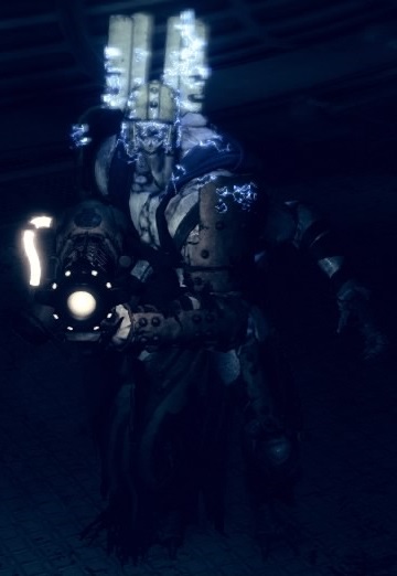 This image is a screenshot of a character or AI unit from the Destiny series of first-person shooter video games developed by Bungie Studios and published by Bungie or Activision. It falls under the screenshot category for a copyrighted computer game or video game, and the copyright for it is most likely held by the company that developed the game. It is believed that the use of a limited number of web-resolution screenshots: