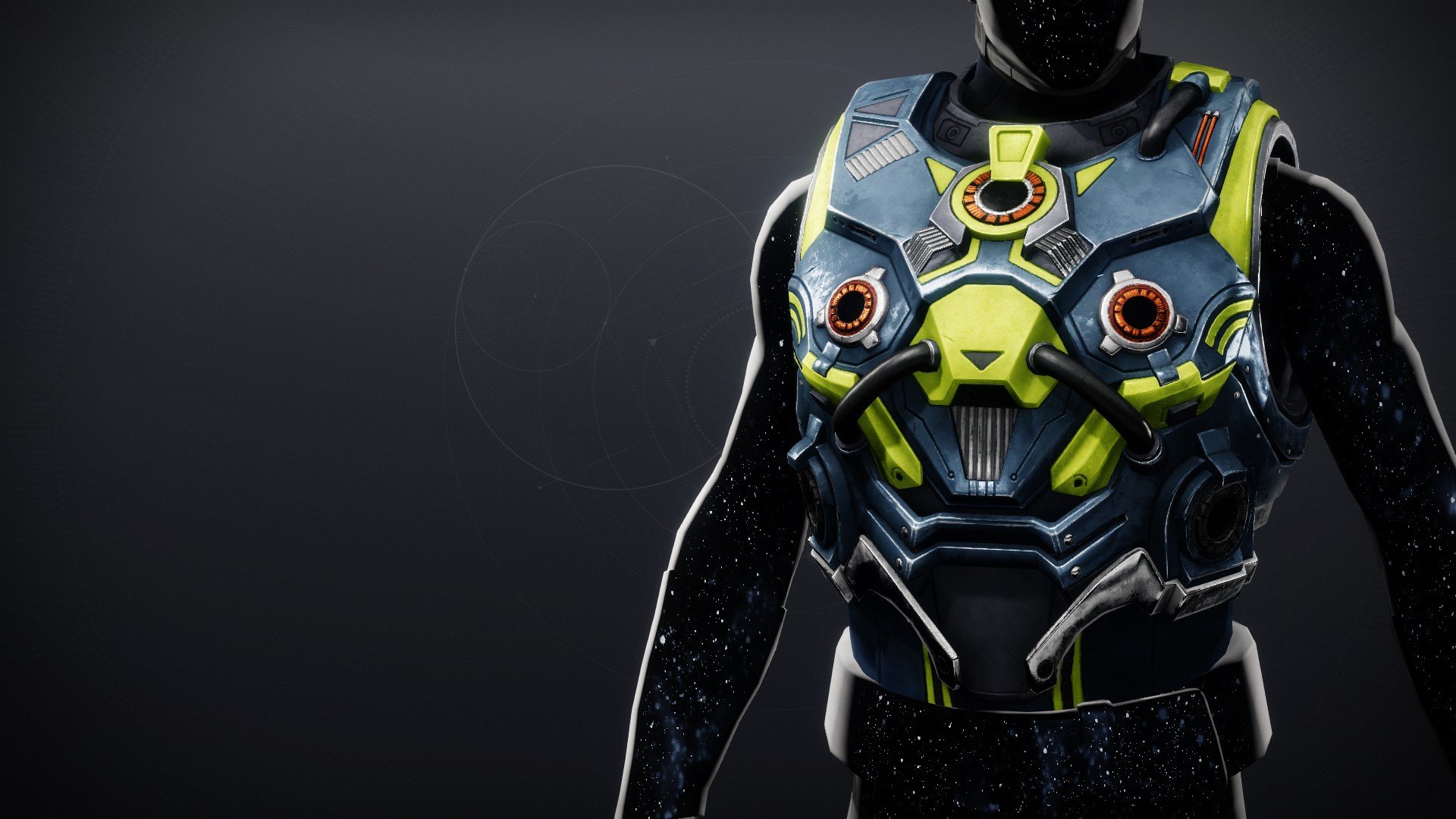 This image is a screenshot of armor from the Destiny series of first-person shooter video games developed by Bungie Studios and published by Bungie or Activision. It falls under the screenshot category for a copyrighted computer game or video game, and the copyright for it is most likely held by the company that developed the game. It is believed that the use of a limited number of web-resolution screenshots: