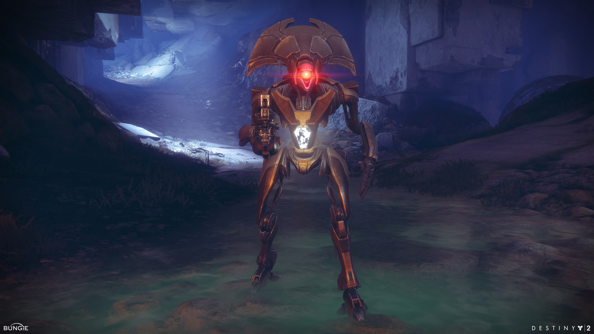This image is a screenshot of a character or AI unit from the Destiny series of first-person shooter video games developed by Bungie Studios and published by Bungie or Activision. It falls under the screenshot category for a copyrighted computer game or video game, and the copyright for it is most likely held by the company that developed the game. It is believed that the use of a limited number of web-resolution screenshots: