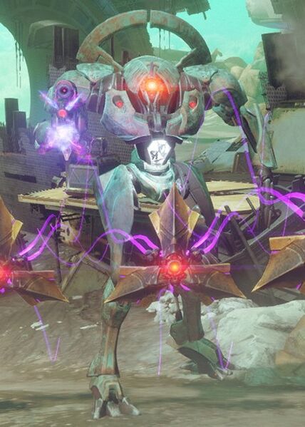 This image is a screenshot of a character or AI unit from the Destiny series of first-person shooter video games developed by Bungie Studios and published by Bungie or Activision. It falls under the screenshot category for a copyrighted computer game or video game, and the copyright for it is most likely held by the company that developed the game. It is believed that the use of a limited number of web-resolution screenshots: