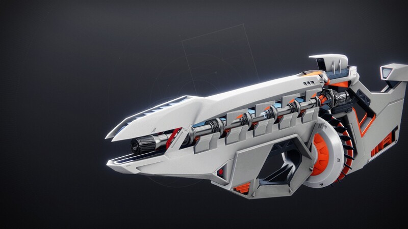 This image is a screenshot of a weapon from the Destiny series of first-person shooter video games developed by Bungie Studios and published by Bungie or Activision. It falls under the screenshot category for a copyrighted computer game or video game, and the copyright for it is most likely held by the company that developed the game. It is believed that the use of a limited number of web-resolution screenshots: