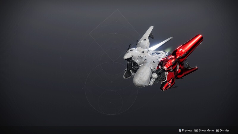 This image is a screenshot of a vehicle from the Destiny series of first-person shooter video games developed by Bungie Studios and published by Bungie or Activision. It falls under the screenshot category for a copyrighted computer game or video game, and the copyright for it is most likely held by the company that developed the game. It is believed that the use of a limited number of web-resolution screenshots: