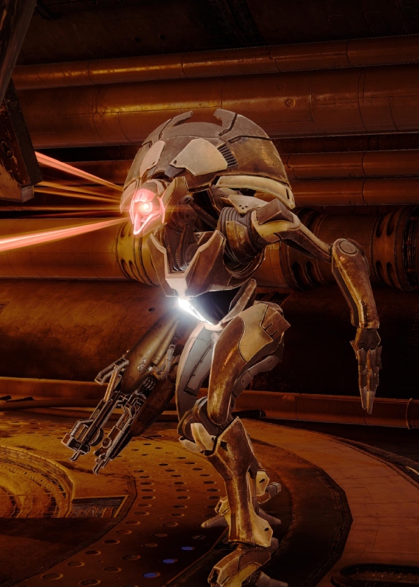 This image is a screenshot of a character or AI unit from the Destiny series of first-person shooter video games developed by Bungie Studios and published by Bungie or Activision. It falls under the screenshot category for a copyrighted computer game or video game, and the copyright for it is most likely held by the company that developed the game. It is believed that the use of a limited number of web-resolution screenshots: