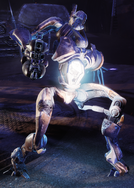 This image is a screenshot of a character or AI unit from the Destiny series of first-person shooter video games developed by Bungie Studios and published by Bungie or Activision. It falls under the screenshot category for a copyrighted computer game or video game, and the copyright for it is most likely held by the company that developed the game. It is believed that the use of a limited number of web-resolution screenshots: