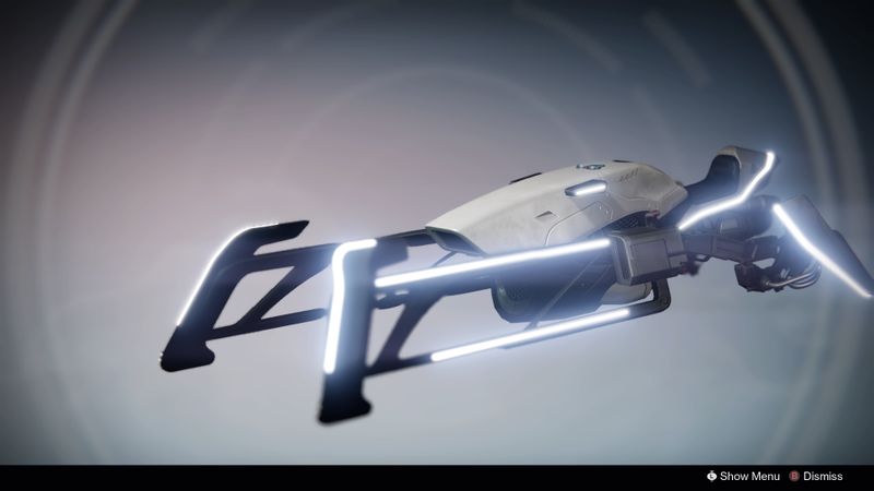 This image is a screenshot of a vehicle from the Destiny series of first-person shooter video games developed by Bungie Studios and published by Bungie or Activision. It falls under the screenshot category for a copyrighted computer game or video game, and the copyright for it is most likely held by the company that developed the game. It is believed that the use of a limited number of web-resolution screenshots: