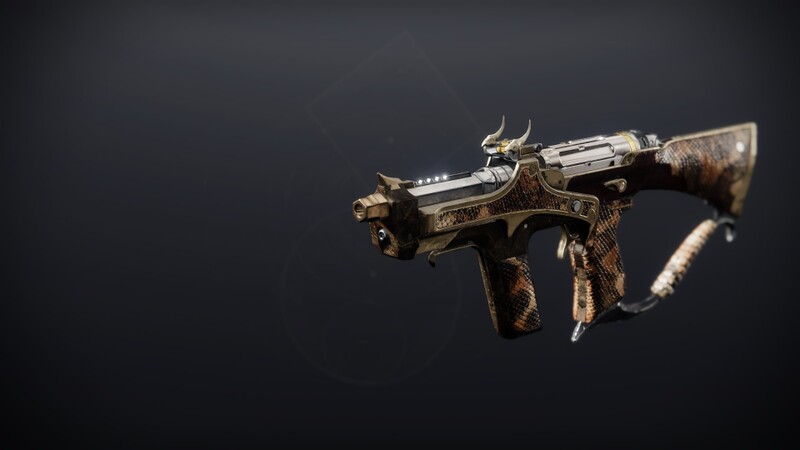 This image is a screenshot of a weapon from the Destiny series of first-person shooter video games developed by Bungie Studios and published by Bungie or Activision. It falls under the screenshot category for a copyrighted computer game or video game, and the copyright for it is most likely held by the company that developed the game. It is believed that the use of a limited number of web-resolution screenshots: