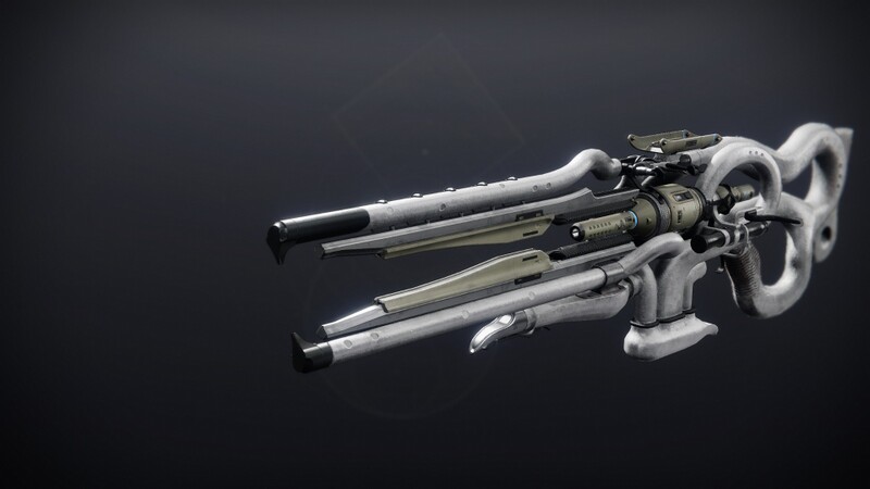 This image is a screenshot of a weapon from the Destiny series of first-person shooter video games developed by Bungie Studios and published by Bungie or Activision. It falls under the screenshot category for a copyrighted computer game or video game, and the copyright for it is most likely held by the company that developed the game. It is believed that the use of a limited number of web-resolution screenshots: