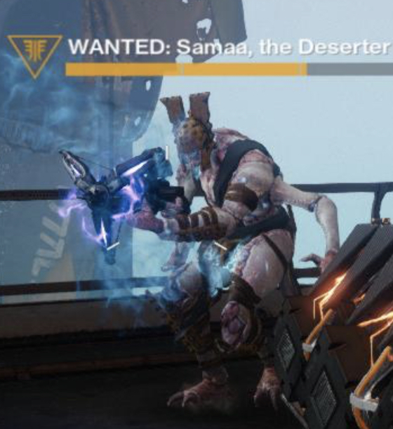 This image is a screenshot of a character or AI unit from the Destiny series of first-person shooter video games developed by Bungie Studios and published by Bungie or Activision. It falls under the screenshot category for a copyrighted computer game or video game, and the copyright for it is most likely held by the company that developed the game. It is believed that the use of a limited number of web-resolution screenshots: