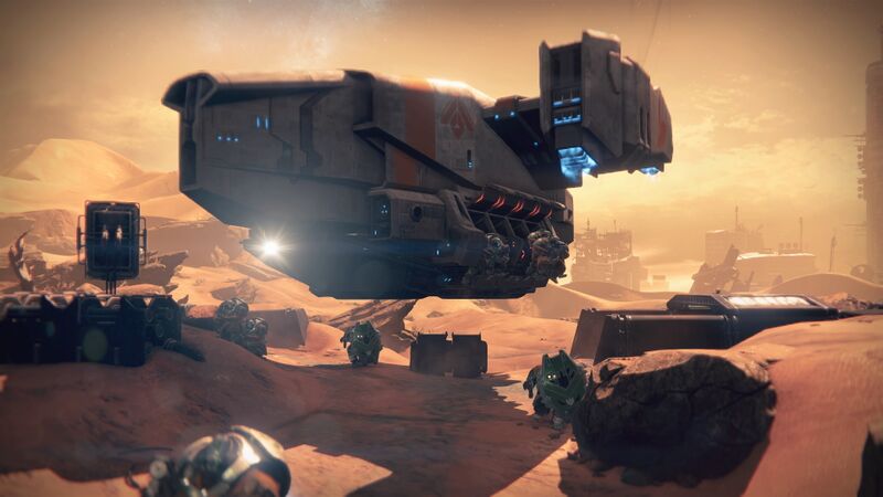 This image is a screenshot of a vehicle from the Destiny series of first-person shooter video games developed by Bungie Studios and published by Bungie or Activision. It falls under the screenshot category for a copyrighted computer game or video game, and the copyright for it is most likely held by the company that developed the game. It is believed that the use of a limited number of web-resolution screenshots: